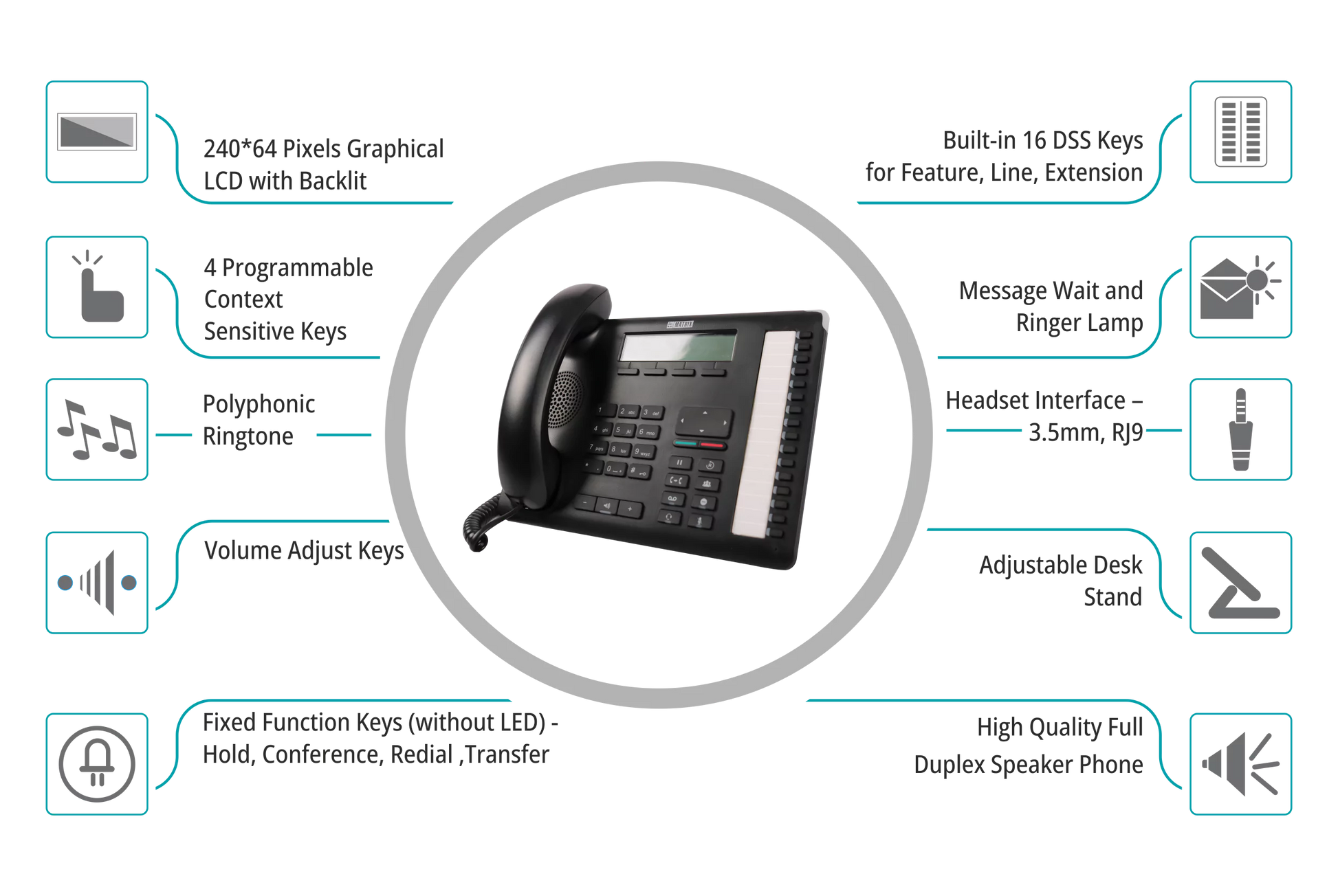 - Built-in 16 DSS Keys: Digital key phone with one-touch easy access to different line extensions