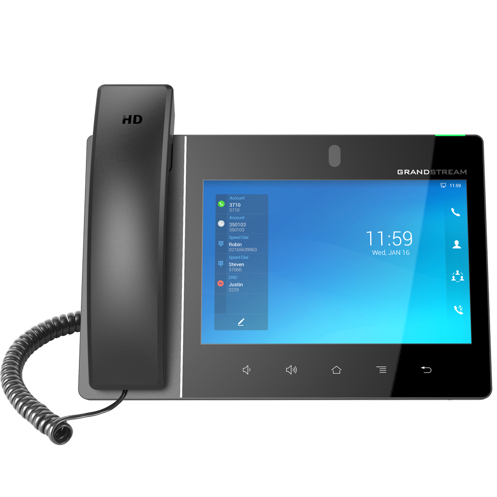 The Grandstream GXV3470 is a high-end smart IP video phone for professionals and executives who need a powerful communication and productivity solution. Powered by Android 11 and featuring an 8-inch 1280x800 capacitive touchscreen, the GXV3470 delivers a seamless unified communications experience.